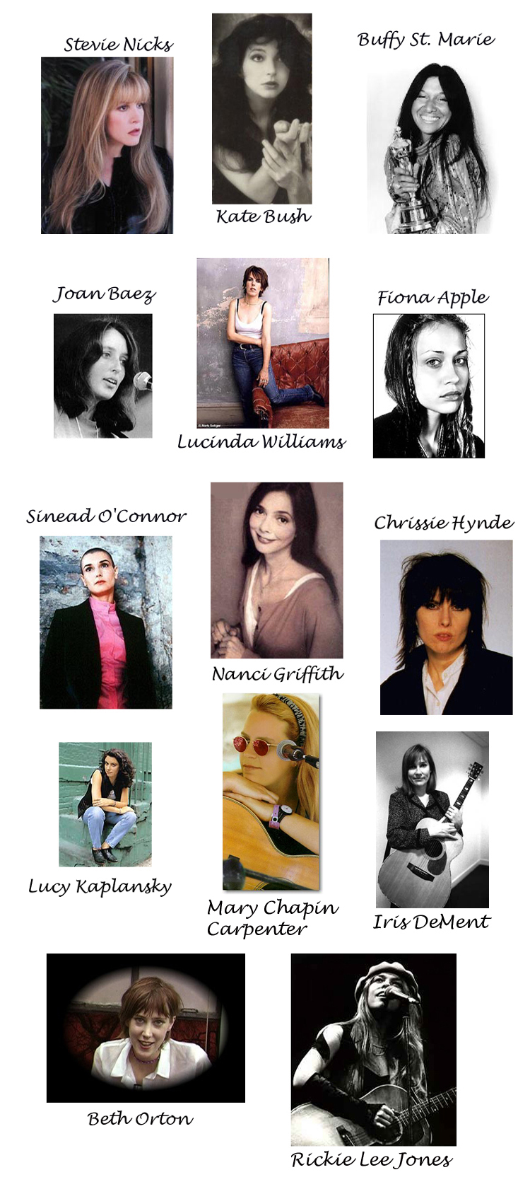 This page doesn't represent all of the excellent female singers and songwriters, but